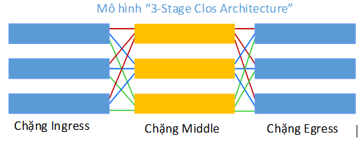 Mô hình này gồm có 3 chặng (stage) từ khi dữ liệu đi vào cho tới khi đi ra. Các chuyên gia về mạng máy tính đã áp dụng mô hình này vào mạng chuyển mạch gói và đặt tên mới là Spine-Leaf hay còn gọi là 2-Tiers Network.